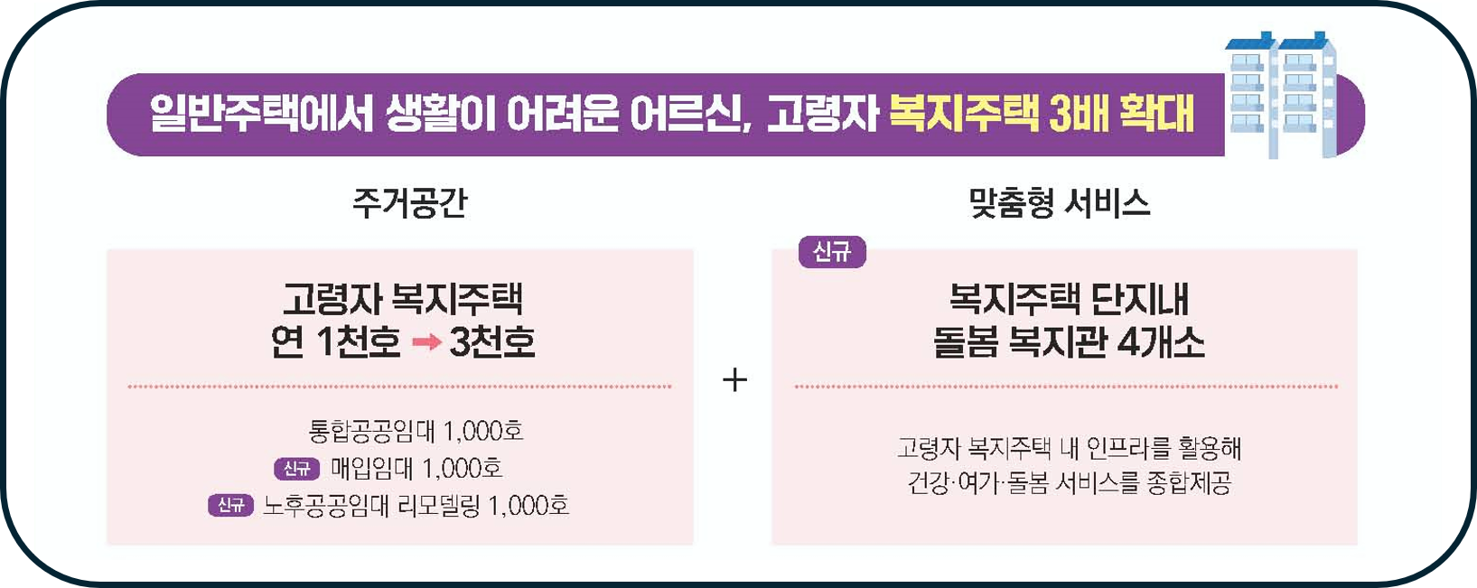 - 고령자 복지주택 연 1천 호에서 3천 호로 확대